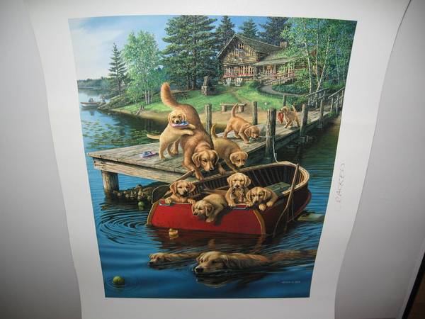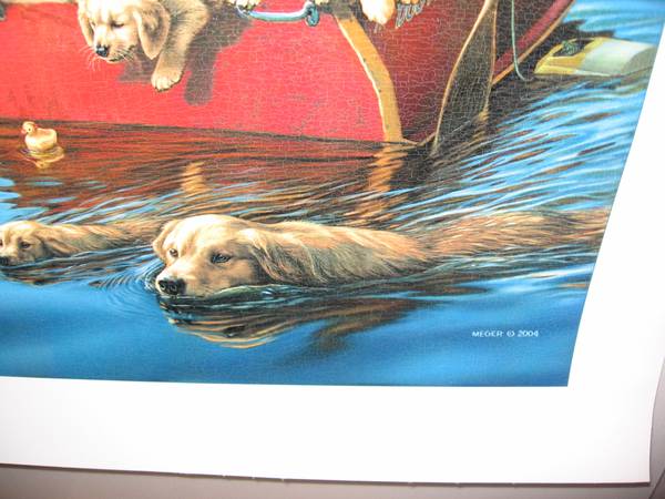James Meger - Dog Paddle - Golden Retrievers on Canvas 17.75 x 14.75 Inches Image Size