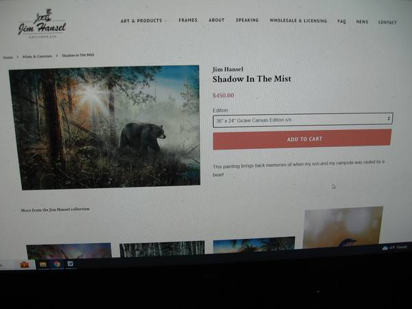 Jim Hansel - Shadow In The Mist - Bear Canvas 461 of 2480 Signed and Numbered 35.5 x 25.5 Inches