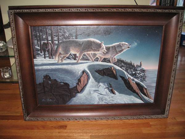 Kim Norlien - Moonlight Prowlers - Wolves Canvas Hand Signed 46 x 34 Inches