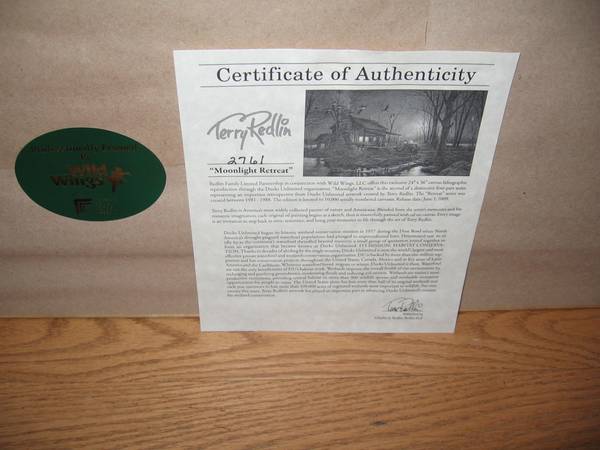 Terry Redlin - Moonlight Retreat - Canvas 2761 of 10,000 Ducks Unlimited 43 x 31 Inches