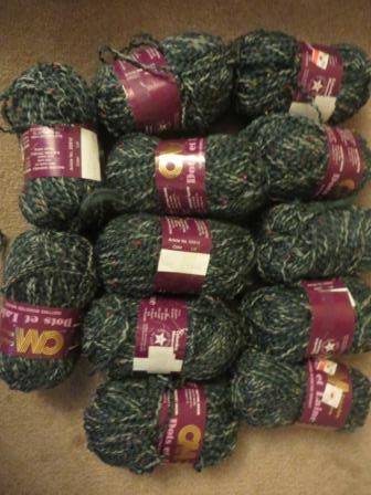 73% Solara Acrylic 19% Virgin Wool 7% Rayon dots, 1% Polyester. 1 ¾ oz. / 50g / 93 yards per skein. New in original wrappers. $35 for all 12