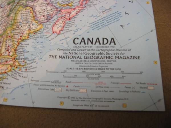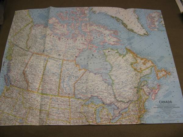 Canada National Geographic map from 1961 25" x 19" old vintage ephemera
