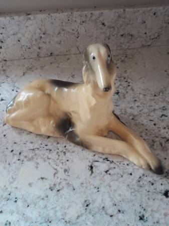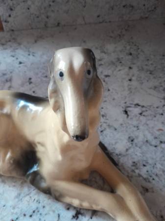 Beautiful vintage Art Deco chalk ware dog figurine. Either Afghan or Borzoi, I am unable to clearly identify. It's in beautiful condition with very few wear marks for its age. Looks fabulous when...
