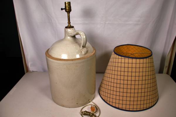 REALLY NICE RED WING JUG STYLE CROCK LAMP WITH HANDLE AND SPOUT - 5 GALLON SIZE. DISPLAYS THE RED WING , 5 FOR THE GALLON . MARKED WITH RED WING , MINN, AND UNION RED WING . ALSO INCLUDES THE LAMP SHADE PICTURED. THERE ARE NO REAL ISSUES WITH THIS CROCK, MINOR CHIP HERE OR THERE . PLEASE SEE PICS TO APPRECIATE THIS GREAT PIECE. - I offer a safe and secure transaction at my storage locker in Burnsville by appointment, during their normal business hours. (0033)