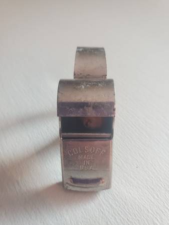 COLSOFF WHISTLE: Hold by two fingers; two-finger (index/middle). Used but in great working condition: hockey, coach, referee, reffing, playground, metal, chrome. $10
