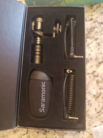 I am selling a Saramonic Vmic Mini, this is a directional condenser microphone for shooting video with DLSR, cameras, or smart phones. This is sometimes called a shot-gun microphone.