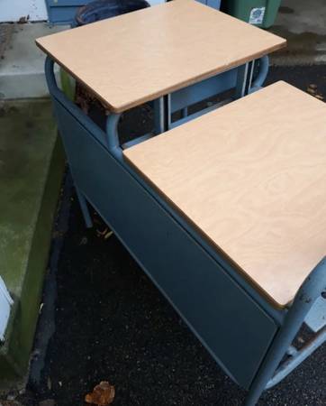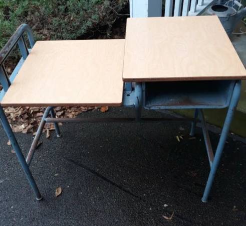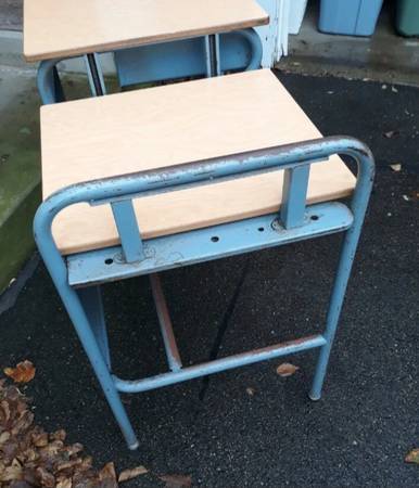 Antique metal Turquoise And Wood Industrial Mid-century Double Student - $425 (Savage)