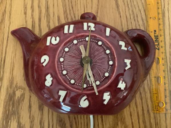 Beautiful Sessions product, dating from 1950. Still runs smoothly after almost 75 years of operation. All original condition, including the power cord. Nice patina on the hands and the cherry red glaze still shimmers. Measures 9X6x2. Would a be a sweet decorator piece to your kitchen decor.