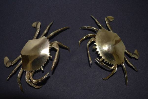 **Vintage Brass Set Of 2 Crab / Ashtrays. Note: The top of the both crabs is hinged and opens for a ashtray if wanted.