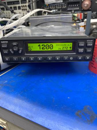 Garmin GTX 327 Mode AC ATC transponder in very good condition. According to the previous owner was purchased new and was never installed. Has Software Version 2.09 and includes the mounting tray with connectors and some wiring. Tested today and is working with a good display. Includes a copy of the installation manual and original purchase receipt. $795 obo