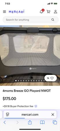 Brand new 4moms portable playpen. Used once on vacation then no longer needed it. This one is well made very sturdy. Paid over $300 for it