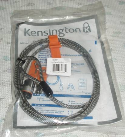 Kensington-brand keyed laptop/notebook lock, new in never-opened package. Model “MicroSaver” 64068F. Two keys are included. $9.00. No texts or phone calls, e-mail contacts only. Thank you for...