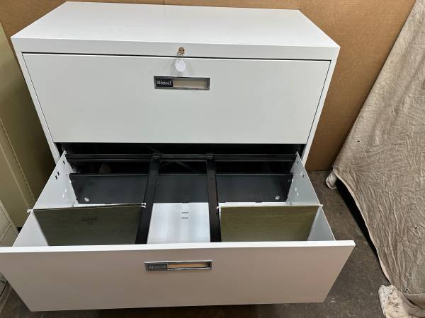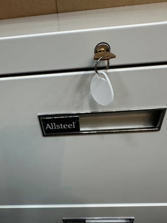 Gently used locking lateral file cabinet for sale. ALLSTEEL mfr.