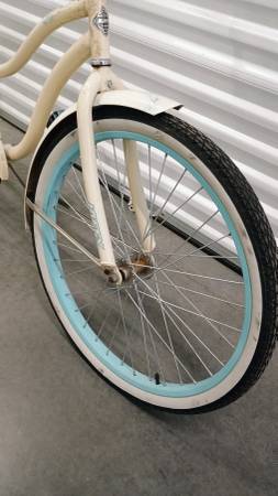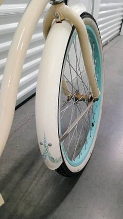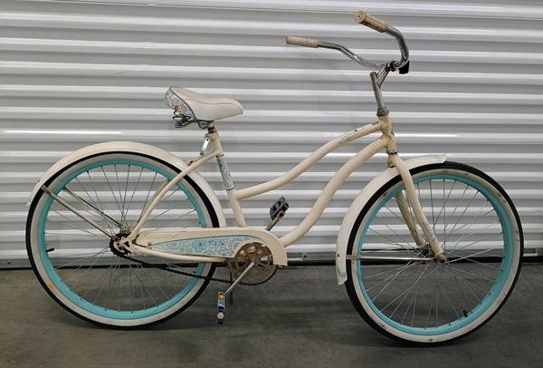 Ladies style beach cruiser bicycle with coaster brake. 18 inch frame size for teens or small adult riders.