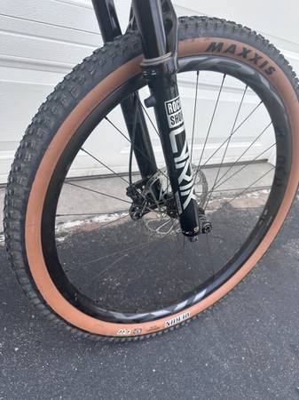 Carbon frame, carbon wheels, carbon crank and bars. Sram AXS wireless shifter with XX1 crank and derailleur .