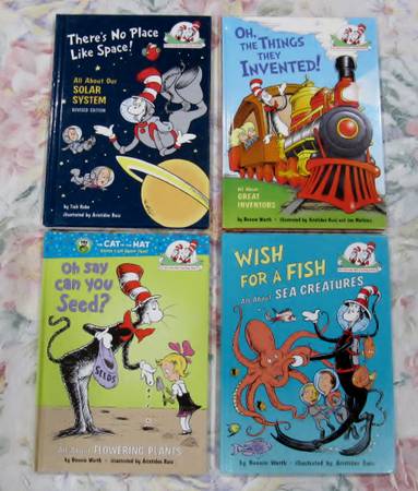 Lot Of Four (4) “The Cat in the Hat’s Learning Library” Books * They Are Fun & Age Appropriate Informative Books * Included Are: OH, THE THINGS THEY INVENTED! (All About GREAT INVENTORS), oh say can you seed? (All About FLOWERING PLANTS WISH FOR A FISH (All About SEA CREATURES), There’s No Place Like Space! (All About Our SOLAR SYSTEM)