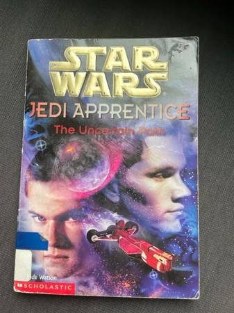 Star Wars Jedi Apprentice The Uncertain Path by Jude Watson. Used Scholastic Library Book. Back cover damaged but rest of book is in good condition. $5 cash only.