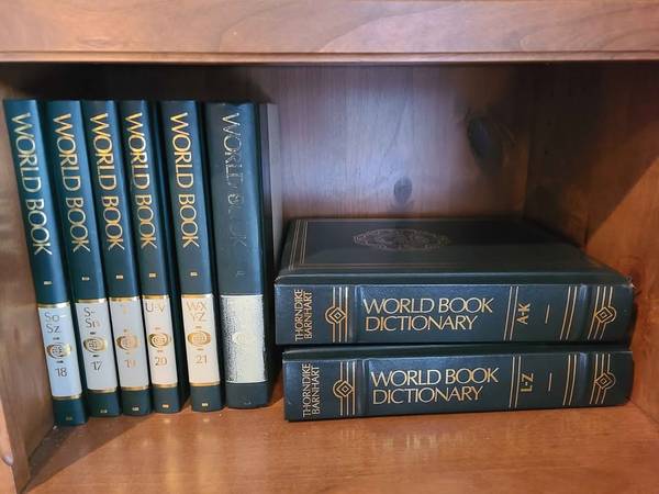 F IT'S LISTED, IT IS AVAILABLE. Full set (24 books) of The World Book Encyclopedias 1996. Leather bound. Smoke free, pet free and kid free home. Pickup in Savage. Venmo payment preferred.