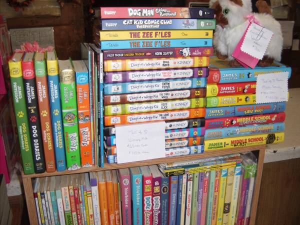 We have story books (( hard and soft cover )), "hard page" books for the youngest children, over (( 90 )) level 1-2-3 learn to read books, educational books, graphic novels and various chapter books. Prices do vary.