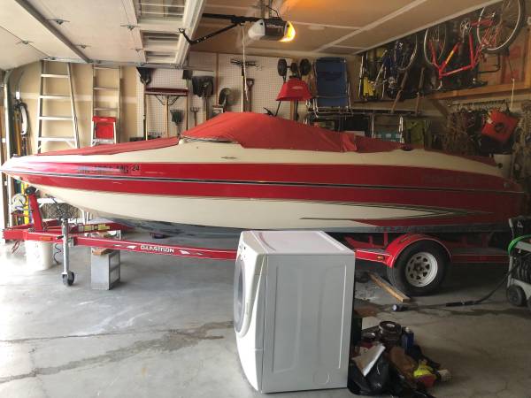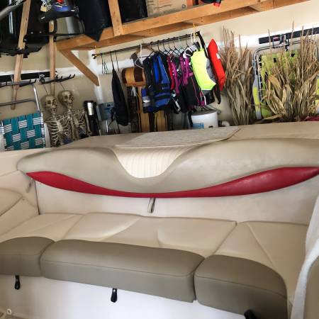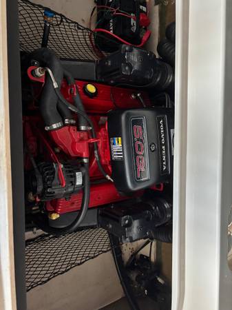 Volvo Penta 5.0 engine. Just tuned up with oil change and all new spark plugs plus new rotor cap kit. New snap in flooring and rear seat covering 2024. Boat is in great running condition with only 425 hours. Satellite radio with 6 speakers. Folding trailer hitch. Custom boat snap cover. Garage kept all year long.