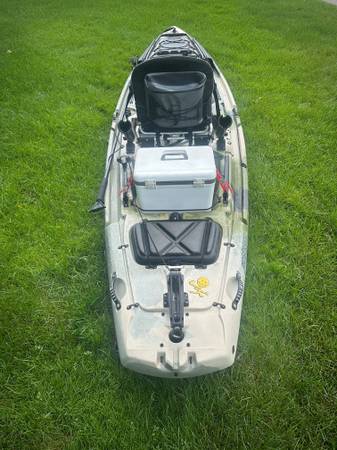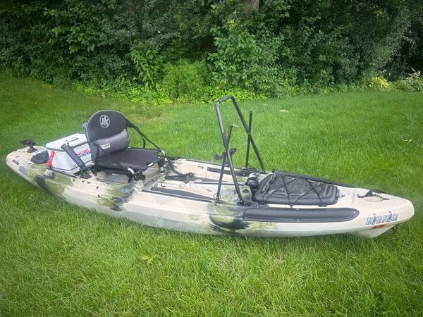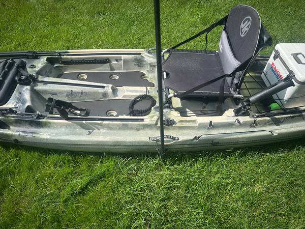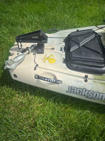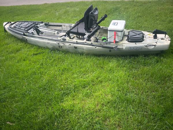 This is a Jackson Big Rig fishing kayak with very little use and it’s in great condition. Hasn’t seen the water since 2018, stored inside. Used it for fly fishing for bass and pike on local lakes. Very stable stand-up fishing platform. Comes with adjustable seat, 3 Ram Mount rod holders, dry storage, fishing rod tie downs with tip protection, casting brace, water bottle holder, drybox/cooler, anchor system, stake-out system and many other features. Only selling because I have way too many things that float, haven’t used it in several years and I need the indoor storage space back!