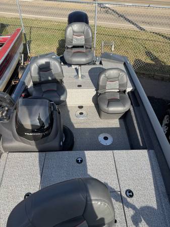 2021 Tracker Pro Team 175 2021 Mercury 75 hp (only 30 hours) 2021 Custom Bunk Trailer Minnkota 55# trolling motor Lowrance Hook 7 (Bow) Lowrance Hook 9 (Console) Travel Cover Spare Tire 2 Livewell’s...