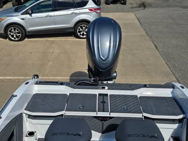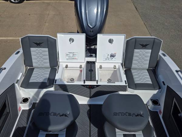 JUST ARRIVED! 2026 Vexus DVX 22-S powered by a 350hp Yamaha for only $130,141 plus tax/license!! Boat colors are Summit White with Steel Slate stripe and Black Onyx pinstripe.