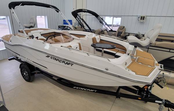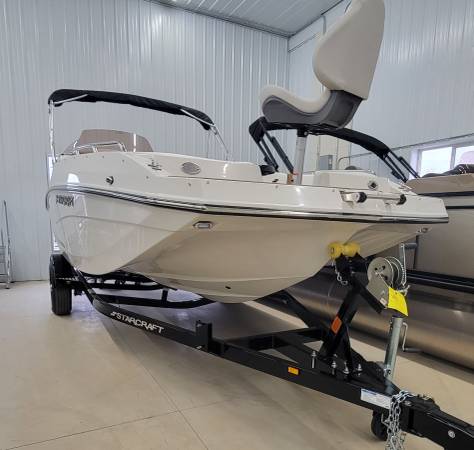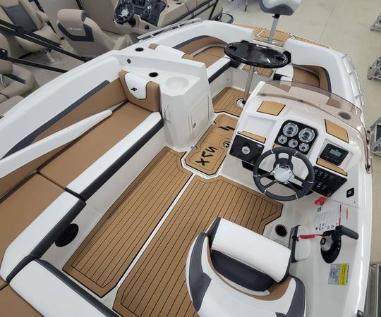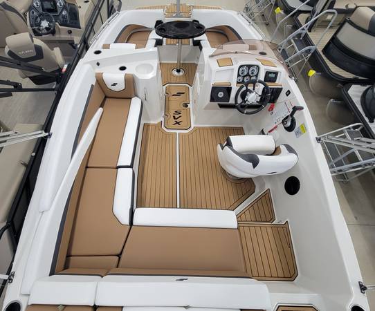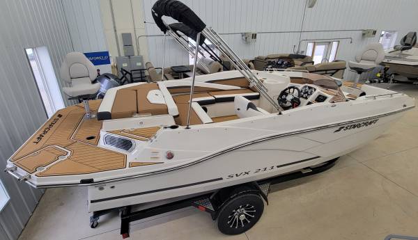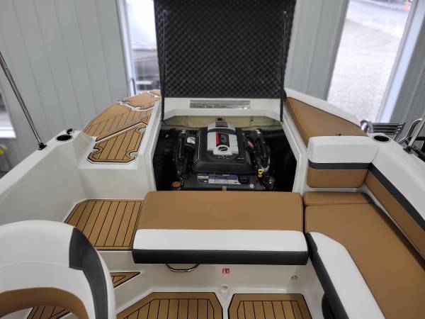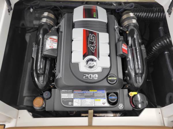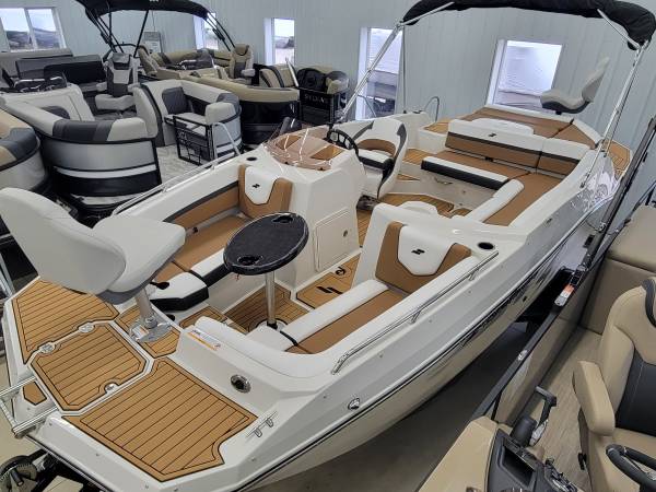 This is a show stopper of a boat! Please everyone in this roomy boat designed for comfort, water sports and fishing! Features include: Hydraulic steering, bimini shade top, full cover, helm seat with flip up bolster, fishing package (2 chairs, trolling motor plug, livewell), stainless steel rub rail, docking lights, bluetooth radio, marine mat flooring, depth finder, table, MerCruiser Alpha 4.5L 200hp, extended rear deck, single axle bunk trailer with swing tongue. This boat is roomy, has a fabulous back-end lounge area and can also accommodate throwing in a line... all at an affordable price! Come visit our showroom and take a peek!