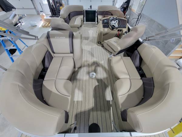 2026 Sylvan Mirage 820 LZ with a Yamaha F40 4 stroke. This pontoon includes all the standard Mirage features, with the addition of the following add ons: 25" floats, high back reclining captains seats, extreme steering with tilt wheel, digital depth gauge, trim gauge, in seat livewell, playpen cover, and bimini top. This pontoon is indoors and ready to view. Please call for more details, or to set up a viewing. 952-200-7211
