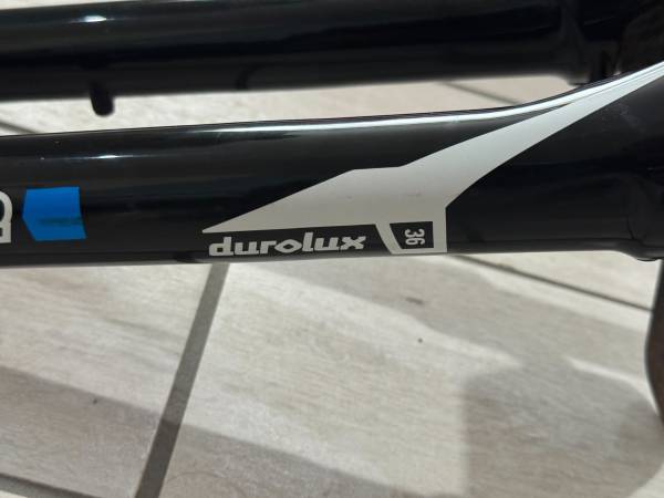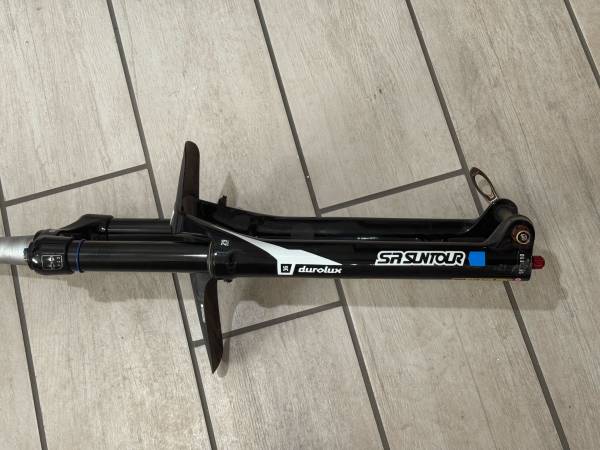 SR Suntour Durolux 36 RC2 with 160mm travel. this for has the EQ Air chamber. Also come with the Q-Loc axle. Everything works as it should and seal were just serviced a few months ago. there are some scratches on the lower fork leg (pictured). also comes with the fender.