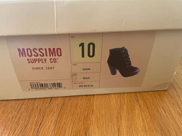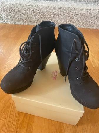 Black Boots size 10 from a smoke-free, pet-free home. 4 1/2 heel, lace up, suede looking. $22 cash only.