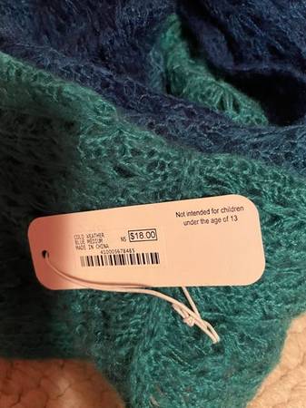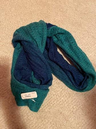 Blue Green Knit Infinity Scarf from Charming Charlie. NEW with tags on from a smoke-free, pet-free home. $10 cash only.