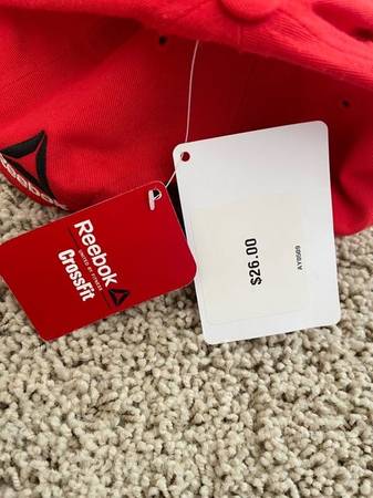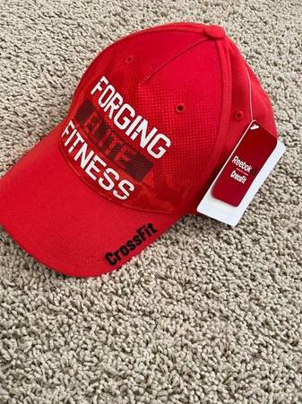 Reebok Crossfit Red Hat adjustable - NEW with tags from a smoke-free, pet-free home. Forging Elite Fitness on front, crosscut stitched on bill and flag stitched on side. $20 cash only.