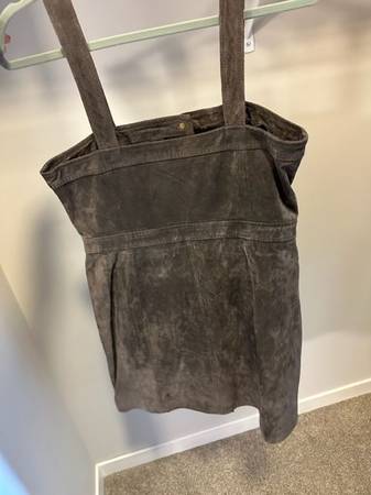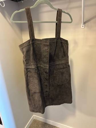 Gray Suede Dress Juniors size Medium Express Brand in like-new condition from a smoke-free, pet-free home. Buttons down front with two front pockets. $15 cash only.
