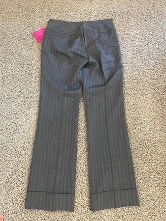 Juniors/Women's Gray Pin Striped Dress Pants size 7 - NEW with tags on from a smoke-free, pet-free home. $10 cash only.