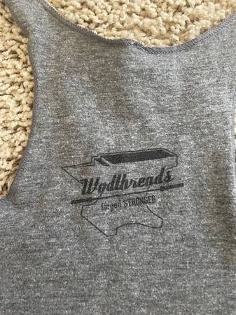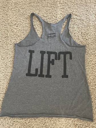 Gray Wodthreads weightlifting tank top with flag on front and 'LIFT' on back size Large in like-new condition from a smoke-free, pet-free home. $15 cash only.