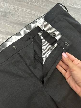 Men's Express Dark Gray Dress Pants size 32x32 extra slim fit, stretch, wrinkle resistant. In like-new condition from a smoke-free, pet-free home. $20 cash only.