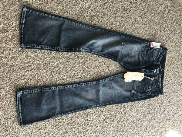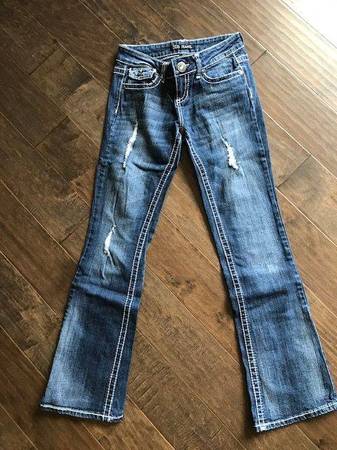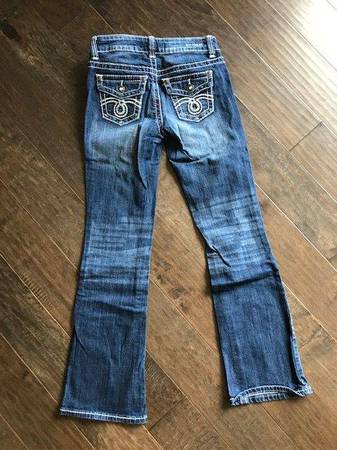 Amethyst bootcut jeans size 7 with button pockets new with tags, $15 cash only.