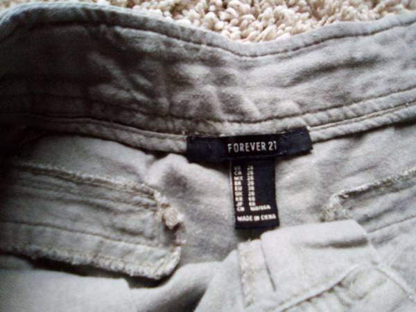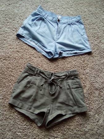 Olive Forever 21 Shorts size 26 (Medium) from a smoke-free pet-free home. Forever 21 Brand, 2 side pockets, fake back pockets, tie belt, cuff hem. $7 cash only.