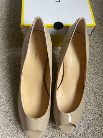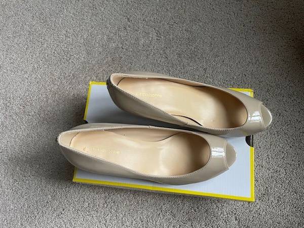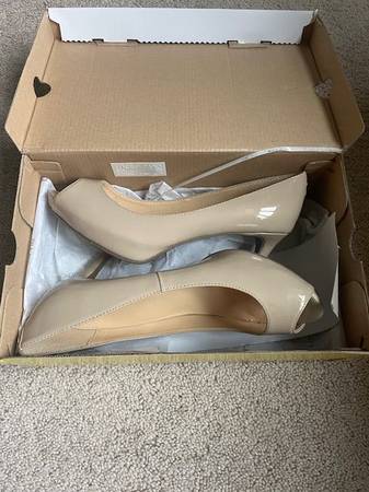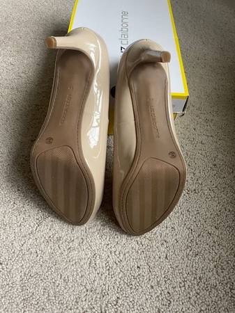 Liz Claiborne Tan Peep Toe Heels Shoes size 8M - New in box - from a smoke-free, pet-free home. Brand is Liz Claiborne, Color is Nude, Style is Ramona, Heel height is 3 1/4 inches, Stiletto heel, open toe, cushioned insole, rubber sole, style # 024-5160-0075, UPC# 0245160014808. $35 cash only.