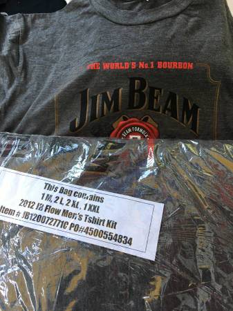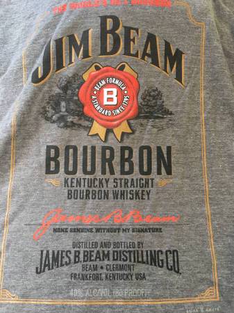 BRAND NEW JIM BEAM WHISKEY LABEL GRAY T-SHIRT. AVAILBLE IN MEDIUM, LARGE, EXTRA LARGE AND XX-LARGE T-SHIRTS . $10 EACH.