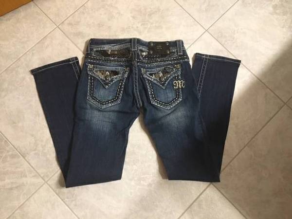 Miss Me Jeans with sequined yolk size 27 straight leg skinny jeans from The Buckle. Brand new with tags still on. Got as gift. From smoke-free, pet-free home. I have the Buckle gift box they came in. In store price $113.00. I am asking $90, Cash Only.