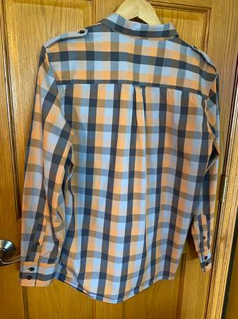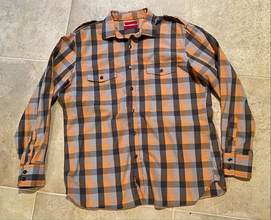 ALFANI MONDERN FIT 100% Cotton ORANGE GRAY PLAID LONG SLEEVE MENS BUTTON UP SHIRT Size LARGE NWOT