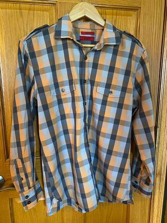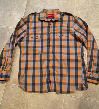 ALFANI MODERN FIT 100% Cotton ORANGE GRAY PLAID LONG SLEEVE MENS BUTTON UP SHIRT