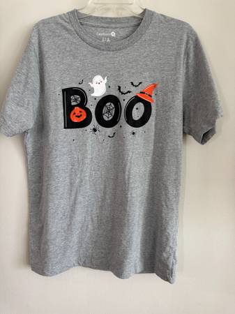 CELEBRATE Gray BOO Ghost Halloween Tee Women’s Size LG New New without tags $12 G