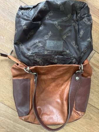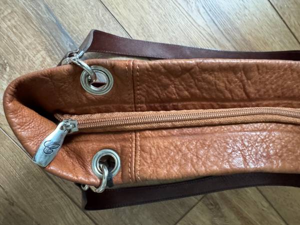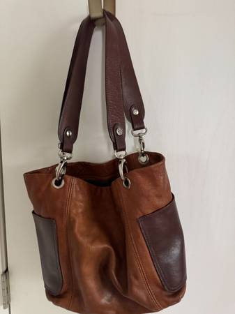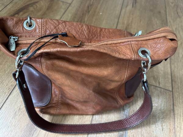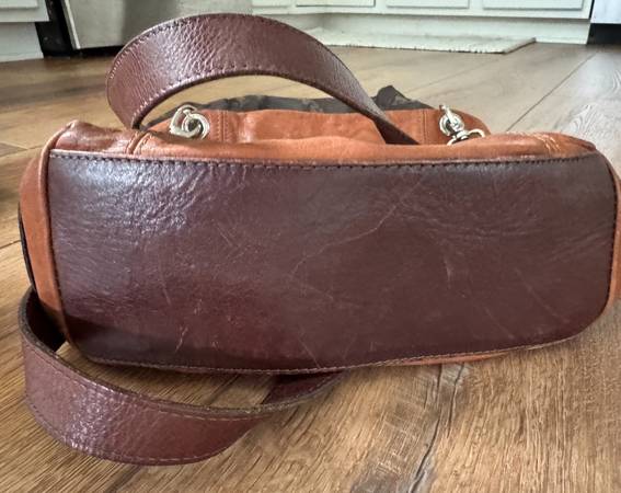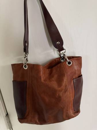 Christina Pell Made in Italy 2-Tone Soft Brown Leather Shoulder Tote Handbag Mint Condition