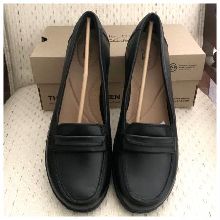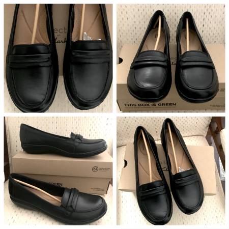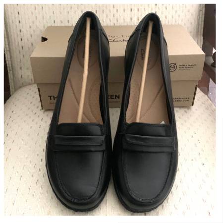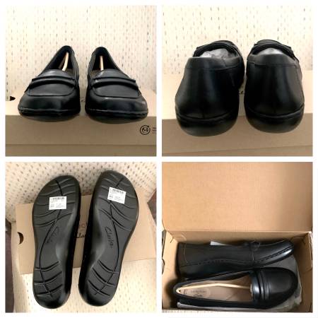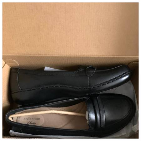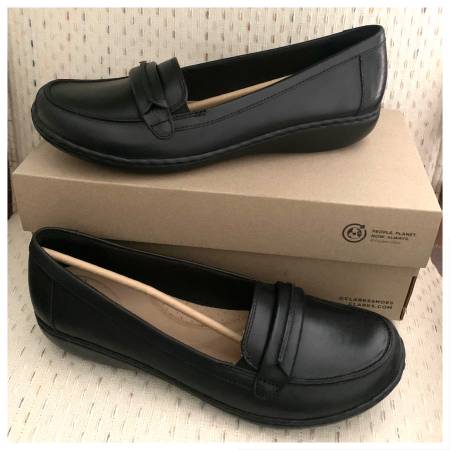 Clarks Ashland Lily Loafers in Black Leather, size 10N, New with box. Solid black color and round toe shape. Made with genuine leather lining and upper material. Featuring the Clarks brand, Ashland model, and N shoe width, these loafers are a versatile addition to any woman's shoe collection, ideal for both casual and dressy occasions. Slip-on style. The shoes in the picture are what you will receive.
