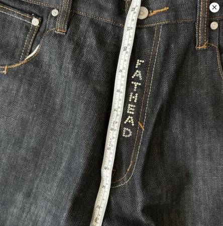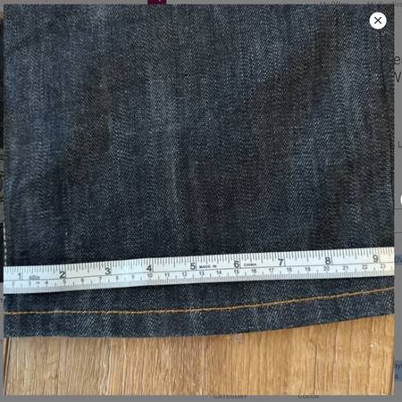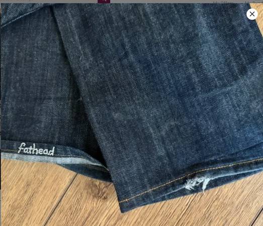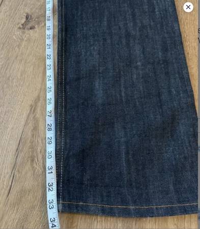JEANS are in great condition with exception of small fraying on left bottom leg cuff area and some distressed feature on bottom of right leg cuff area. See photos