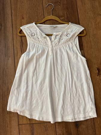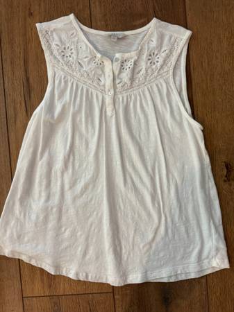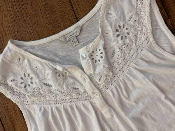 LUCKY BRAND 100% Cotton White Cotton Sleeveless Floral Mesh Yoke Top Size LG NWOT
