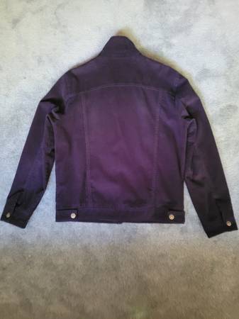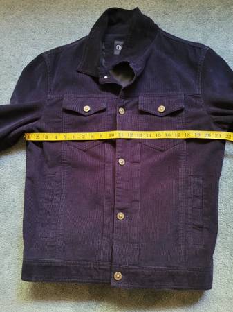 Only $25 - it's a high end super cool Men Navy Blue Coduroy with satin Lined Jean Jacket size M, but wear like a Large size. It can fit men or boy weight 175 - 230 lbs.
